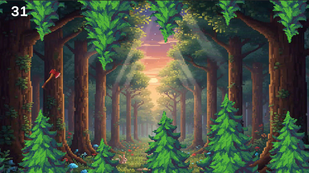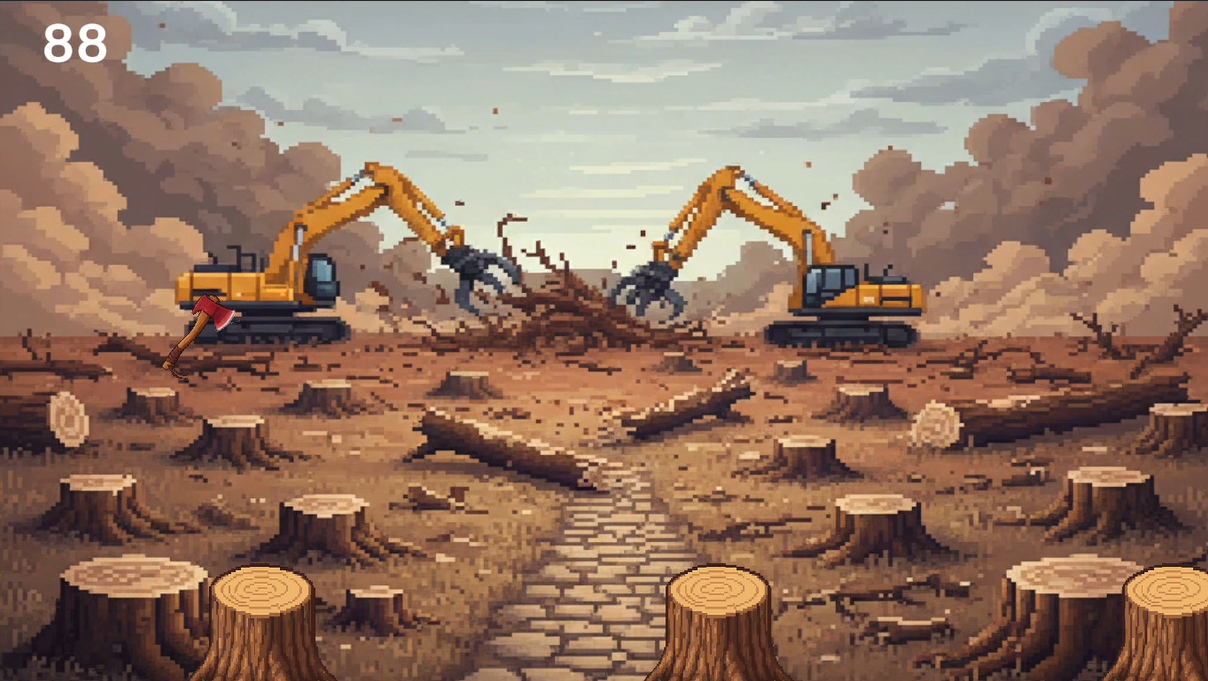 é um jogo desenvolvido com foco na conscientização ambiental, abordando de forma lúdica e acessível o impacto do desmatamento. O jogador controla um machado flutuante que avança automaticamente, enquanto precisa desviar de obstáculos representados por árvores. Conforme a pontuação aumenta, o cenário muda e evidencia visualmente a destruição ambiental: árvores começam a aparecer cortadas, e o ambiente torna-se cada vez mais vazio e desolado, reforçando a mensagem central do projeto.